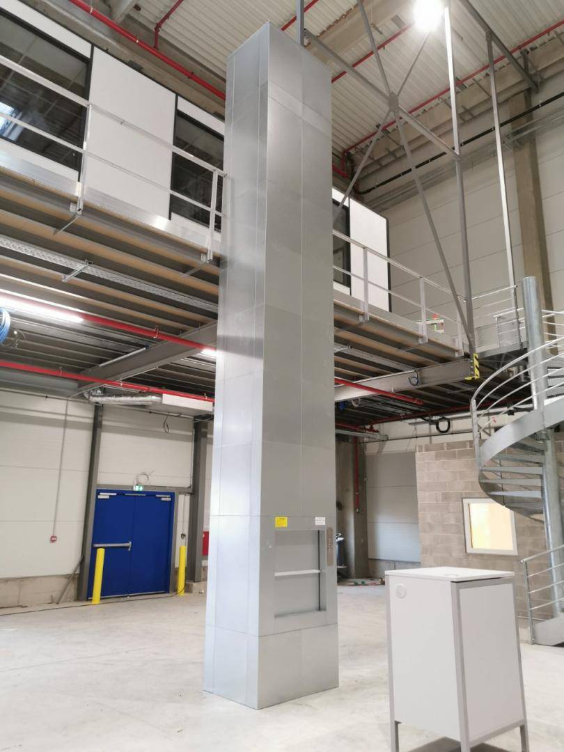 Dans le cadre de l’aménagement d’un entrepôt logistique à Saint-Martin-de-Crau dans les Bouches-du-Rhône (13), notre équipe a procédé à l’installation d’un monte-charge dans un pylône autoporteur, destiné au transport non accompagné de marchandises.